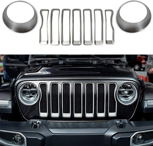 Mesh Grille Inserts Amp Headlight Turn Light Cover Trim For Jeep Wrangler Jl Jt 18 Ebay